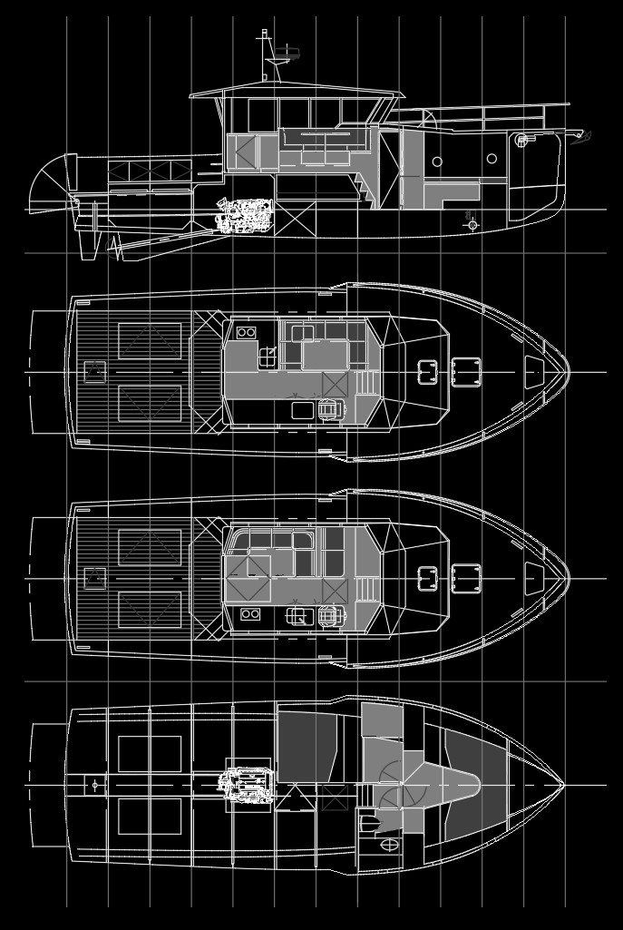 The wheelhouse is home to the galley, saloon and bridge: an open plan configuration that provides space for entertaining, galley preparation and stowage for food and gear. The spacious cockpit will suit swimming, fishing, entertaining or simply chilling out as the proud owner. The for’ard sections house four bunks, a head and shower, just aft of the anchor locker.